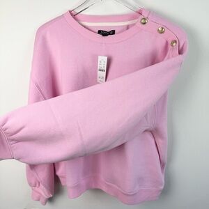J. Crew Heritage Fleece Sweatshirt. New with tags. Super soft. Cropped (ish). Boxy (ish). Gold button on one shoulder elevate this from a sweatshirt to a great piece for so many occasions! No flaws.