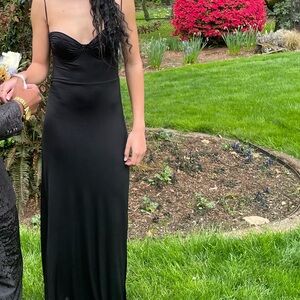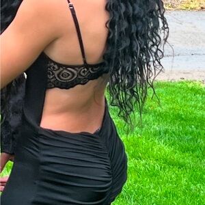 This elegant black lace dress is perfect for prom or any fancy occasion. Its sophisticated design and intricate lace details make it a standout piece in your wardrobe. Adjustable straps!! The back of the dress is absolutely gorgeous! It was worn once to prom so still excellent condition!