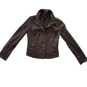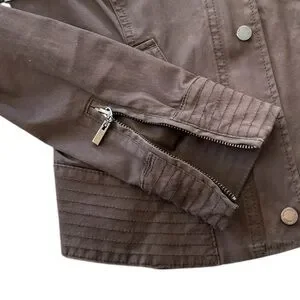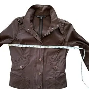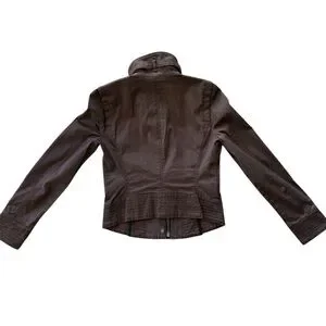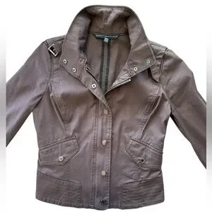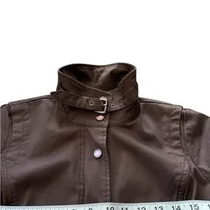 WHBM Chocolate Brown Bomber style Jacket / Coat Copper Snap Buttons & Buckle xxs
