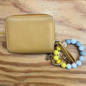 Mustard Yellow Leather Wallet with Beaded Keychain