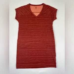TITLE NINE Hiolani T-Shirt Dress Mirikuru Print Rust Striped V Neck Women’s XS