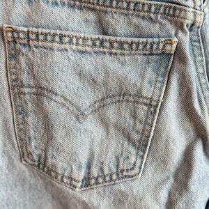 Faint spot on upper front thigh. Wash wear. See photos in listing.