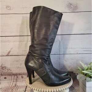 True Religion Women's Charcoal Gray Below The Knee Design & Stiletto Heel Boots