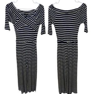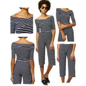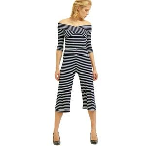 TOPSHOP Bardot Off The Shoulder Jumpsuit Navy & White Sz 6