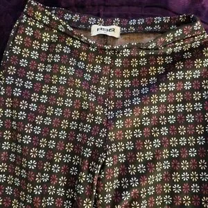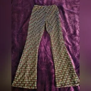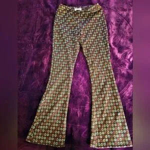 Y2K Daisy Flares! these are the coolest! Multi color with a nice Flare at the bottom. Brand is RSQ, I got these at a Flea Market in Seattle. I think they run a bit smaller than a Large, a true small or medium woman could definitely fit into these. 90's or Y2k does 70's.