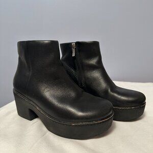 Fitflop Women's Pilar Leather Ankle Boots 7 Black Platform Chunky Heel Booties
