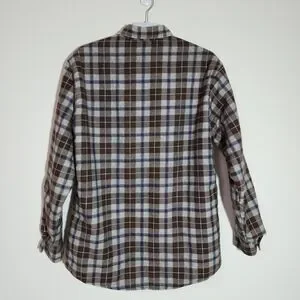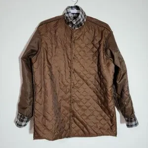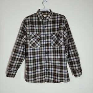 Vtg Perma-Prest Mens Store Plaid Button-Up Shirt Jacket Shacket Brown USA Tall L
