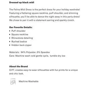 TUCKERNUCK O.P.T Black Felina Midi Dress NWT Size Small