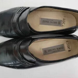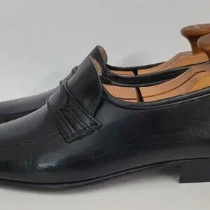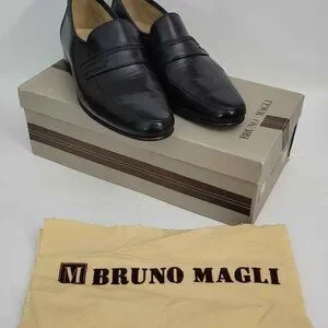 Great pair of Vintage Bruno Bagli Black Leather Italian Loafers in Near Min condition. These shoes were basically tried on and worn for a very short period of time and put back in the box. The original box with polishing cloth and metal shoe spoon is included in this listing. Please check all the images and feel free to ask questions. SHOE TREES ARE NOT INCLUDED.