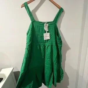 Stylish green dress with a flowy design. Features adjustable straps. Perfect for casual outings.