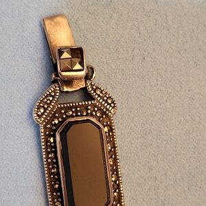 Sterling silver bracelet, VTG, black onyx, marcasite, fantastic 8" long, classic