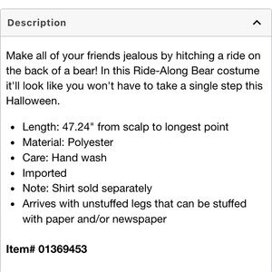 Spirit Teddy Bear Ride Along Carrying Person Halloween Costume One Size