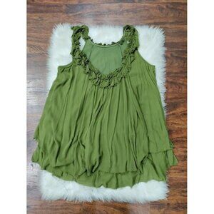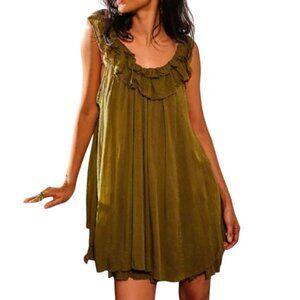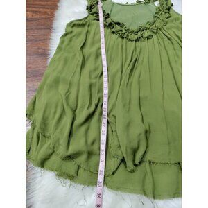 Title: Free People Ruffle Neck Raw Hem Lined Cami Mini Tank Dress Green Women's Medium