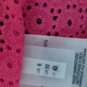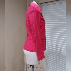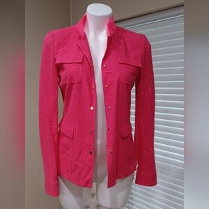 ELIE TAHARI $298 Neon Pink Embroidered Eyelet Ribbon Collar Jacket Top Size 6