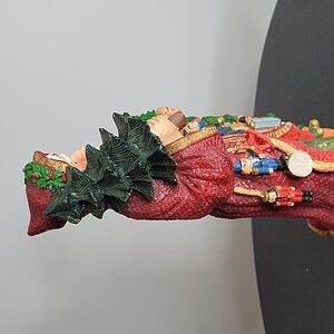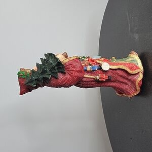 He's about 12 inches tall. Santa holding christmas trees. Winds up on the bottom. Turn volume on to hear the song in the video. The song is "Santa Claus is coming to town". Turn volume on the video to hear the song. Part of the tree is damaged (see close up pic) Smoke Free. One day shipping.