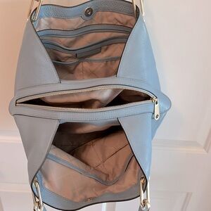 Beautiful Large Leather Designer Bag in Light Blue, perfect for that fresh summer look!