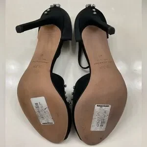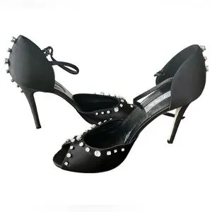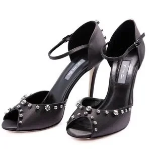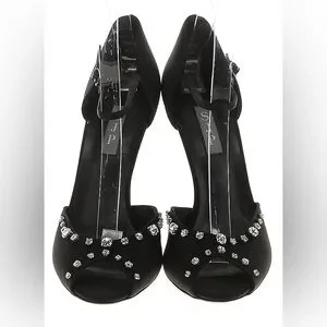 Step out in style with these elegant SJP by Sarah Jessica Parker black peep-toe heels adorned with sparkling rhinestones. Perfect for any special occasion.