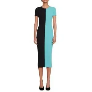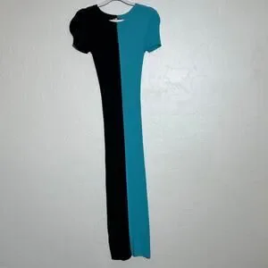 Staud Colleen Colorblock Ribbed Bodycon Dress Black Blue Womens Size Small