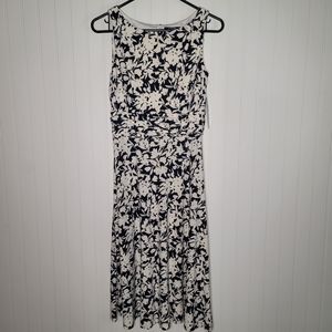 Women's Small, Chaps brand, sleeveless floral dress in navy blue & white.