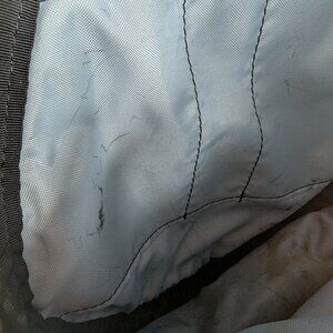 This leather on this bag has many scuffs and needs to be conditioned. The inside also shows wear, stains, and discoloration. Lots of pockets and lots of life left! Approximately 15" x 9" x 4" with a 16" strap drop.