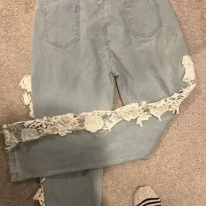 Jeans With White Lace Detail