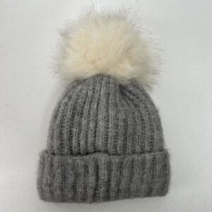 Starting Out Size Infant Beanie Hat Gray Faux Fur Pom Pom Baby Girl Winter