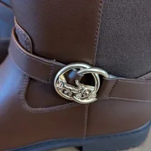 NWT Genuine Leather Risinf Boot Coach Brown Luggage Gold Embellished Boots