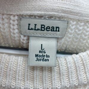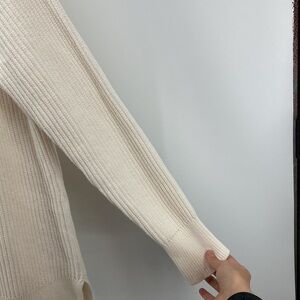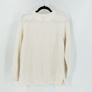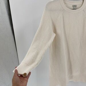 LL Bean ribbed 100% cotton side slit pullover cream colored sweater minimalist