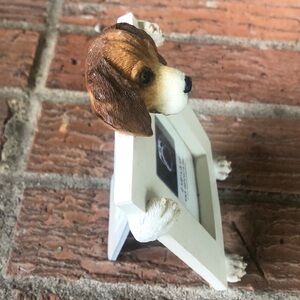 Hand Painted Brown & White Beagle Holding Beautifully Crafted Frame, Easel Back by E&S Imports. Life Like Detail. Different Personality for Each Breed.