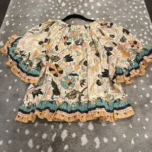 Excellent condition. The Pearl Flora Alessia Top is an easy silhouette with feminine details. This blouse boasts short flutter sleeves, a V-neckline with self-ties, and ruffle hems. Pair with denim and sneakers or ballet flats for an elevated-casual look.