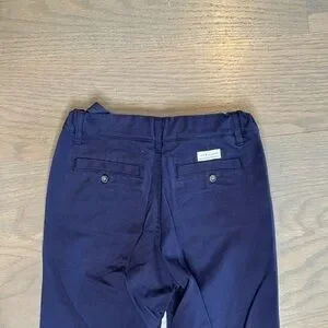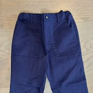 These blue cargo pants feature a straight leg design with elastic cuffs at the ankles, providing a comfortable fit. The textured fabric adds a unique touch, making them suitable for casual outings.