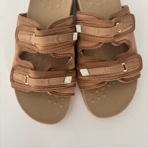 Keywords & Style Tags: Vionic sandals, Rest Sarah slides, orthotic arch support, three-zone comfort, rose tan color, flat sandals, supportive footwear, minimalist style, resort wear, casual chic, summer shoes, women’s size 12, comfort sandals, podiatrist-approved, everyday wear.