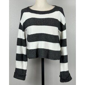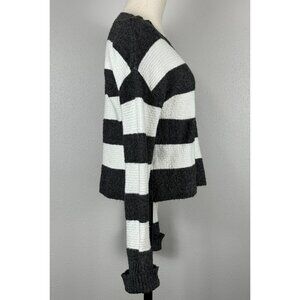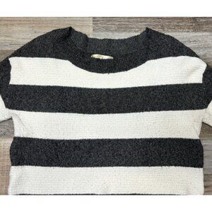 Kaisely Womens Dark Gray and Cream Striped Sweater Long Sleeve Ribbed Medium