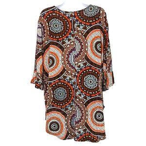 Women's Oversize Ruffle Tunic Size XL Mandala Bohemian Hippie Hipster Scoop Neck