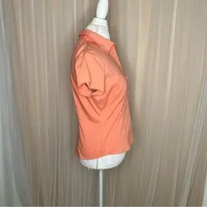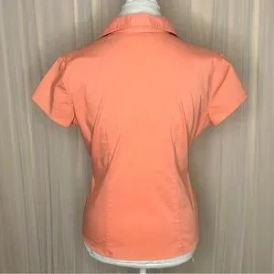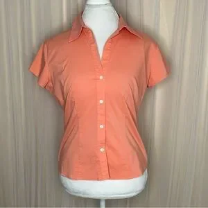 New York & Company Blouse City Stretch Collared Button Down Short Sleeves Apricot/peach color