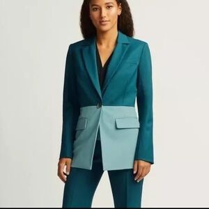 EUC Argent Colorblocked Single Button Blazer Wool Green/Blue Jacket, size 8