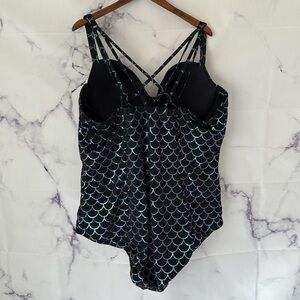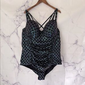 TORRID Slim Fix Underwire Strappy Back One Piece Mermaid Scale Swimsuit 5X DD/F