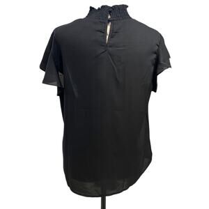 Reese womens Medium Blouse Sparkle Lace Sheer flutter sleeves black holiday smocked mock turtle neck button back closure lightweight