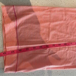 These were given to me by my mother-in-law. They are too small for me and cannot return them. 100% cotton and very comfortable. Dimensions are in photos. Stylish striped shirt. Features orange and white stripes with pink collar.