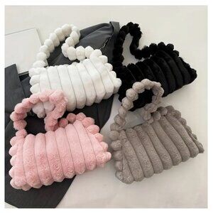 NWT Purple Puff Ball Faux Handbag Purse Shaped Zipper Pull Key Chain Keychain