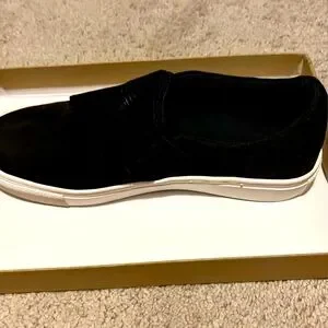 New in box black slip on canvas shoes with white souls