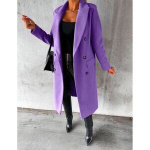 💫 Women Purple Long Wool Coat Double Breasted Fall Winter Clothes Trench Coat