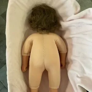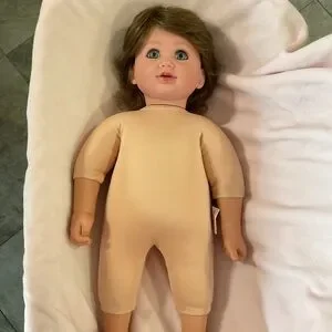 Charming My TWINN Baby doll, an original sculpture by Karen Williams Smith. Striking blue eyes, pink lips and beautiful brows. Dressed in a soft pink outfit with delicate lace details. Perfect for collectors or as a gift. The doll was in an adult collection. All joints works great.
