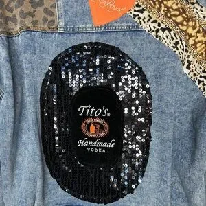 Recycled UpCycled Vintage NWOT Tito’s Crown Royal Denim Jean Jacket Gypsy Hippie