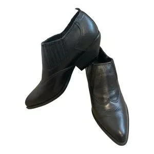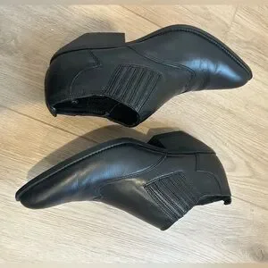 Y2K Zodiac Western Point Toe Shootie Bootie 8 Black Suede Leather Ankle Boot