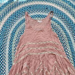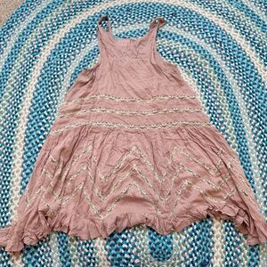 Sheer dotted slip dress with lace inset throughout. Ruffled hem!