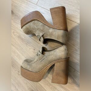 Vintage 90s Y2K Extra Chunky 1.5" Platform Suede Loafers Sz 8