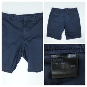 - Uniqlo Blue Shorts. 98% Cotton 2% Spandex. Waist 33 in to 36 in