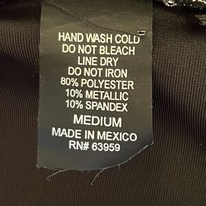 Impressions Womens Top Medium Black Velvet Twofer (one top that looks like two) Long Sleeve Metallic Stretch Pullover