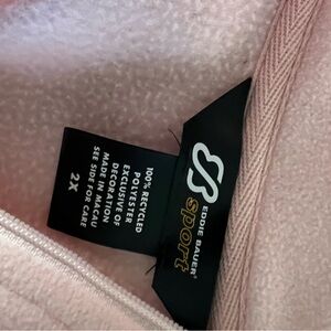 Cozy fleece pullover from Eddie Bauer Sport line. Features ribbed details and quarter zip closure. Made with plush fleece material.new chest is 50 inches total